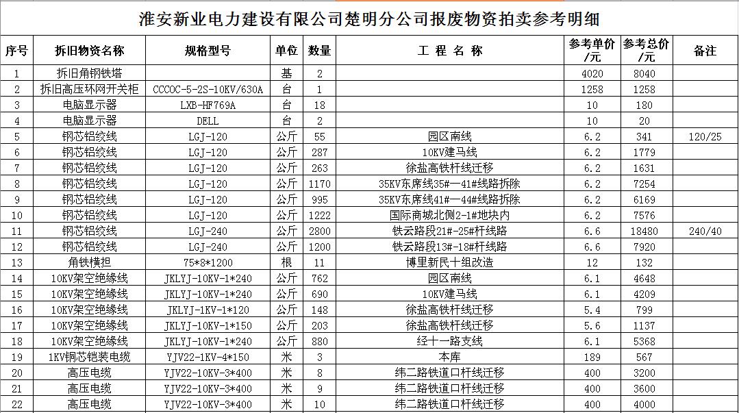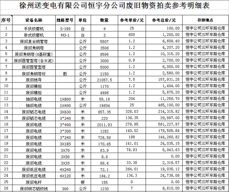 關(guān)注微信公眾號(hào)受江蘇徐供、淮供集體資產(chǎn)運(yùn)營(yíng)中心委托,我公司將通過中國(guó)拍賣行業(yè)協(xié)會(huì)網(wǎng)絡(luò)拍賣平臺(tái)以網(wǎng)絡(luò)競(jìng)價(jià)的方式公開拍賣以下單位的廢舊物資各一批: