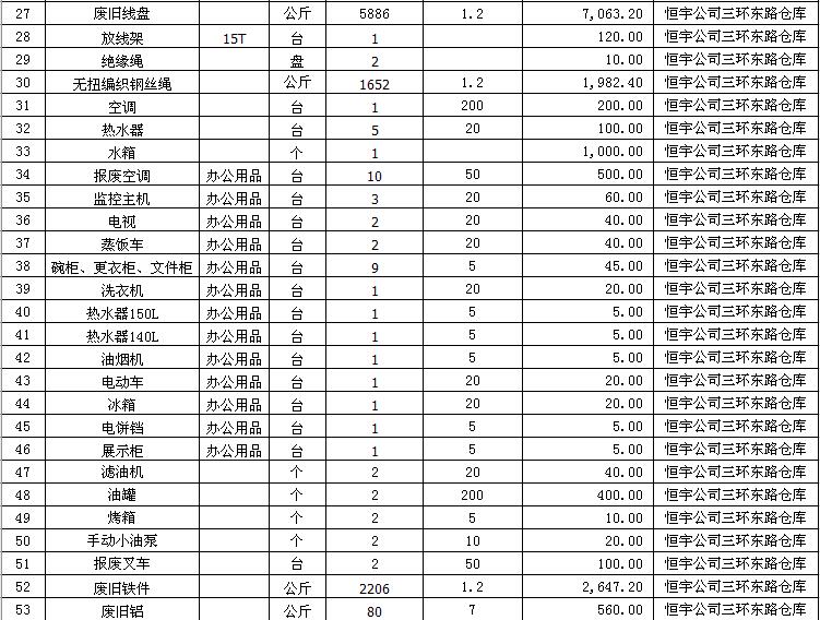 三、本次拍賣物資部分按照單價(jià)拍賣,部分打包拍賣。