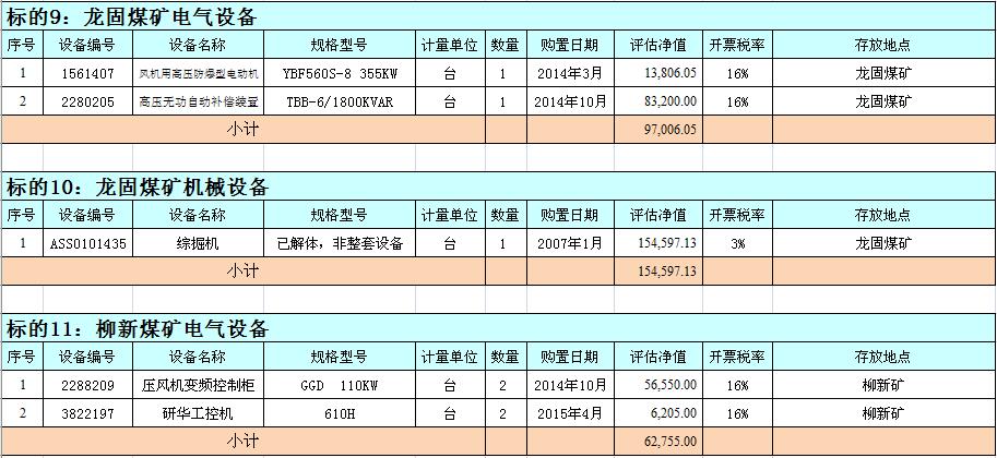 關(guān)注微信公眾號(hào)我公司受委托,定于2018年9月18日10時(shí)在徐州市中山南路55號(hào)副樓三樓本公司拍賣大廳公開拍賣:徐州市馬莊煤礦、大劉煤礦、龍固煤礦、沛城煤礦、柳新煤礦的二手設(shè)備一批。