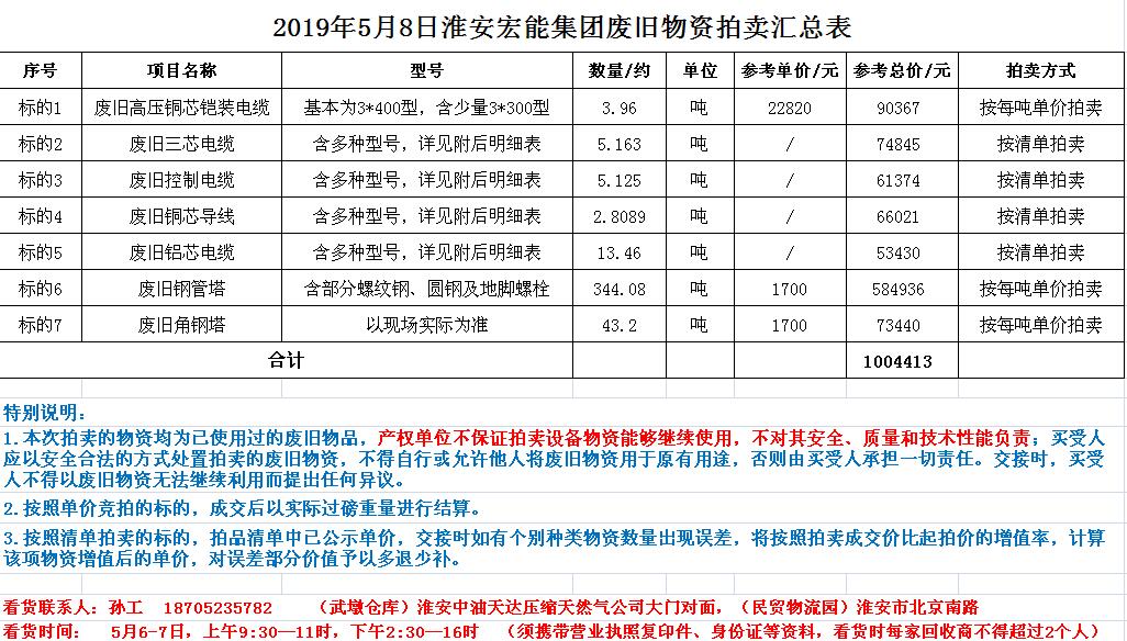 關(guān)注微信公眾號(hào)受淮安宏能集團(tuán)有限公司委托,我公司將通過(guò)中國(guó)拍賣(mài)行業(yè)協(xié)會(huì)網(wǎng)絡(luò)拍賣(mài)平臺(tái)以網(wǎng)絡(luò)競(jìng)價(jià)的方式公開(kāi)拍賣(mài)以下廢舊物資,主要包括:高壓銅芯電纜、控制電纜、銅芯導(dǎo)線、鋁芯電纜、角鋼塔、鋼管塔等。