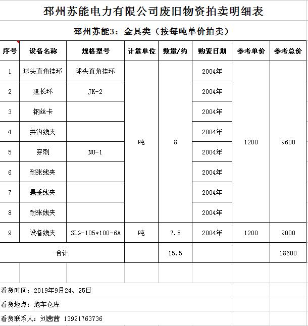 關(guān)注微信公眾號(hào)受委托,我公司將通過中國拍賣行業(yè)協(xié)會(huì)網(wǎng)絡(luò)拍賣平臺(tái)以網(wǎng)絡(luò)競(jìng)價(jià)的方式公開拍賣廢舊電力物資一批,主要包括:電纜、導(dǎo)線、廢舊鋼材、鋼芯鋁絞線、金具、雜品、機(jī)具、空調(diào)、辦公設(shè)備等。