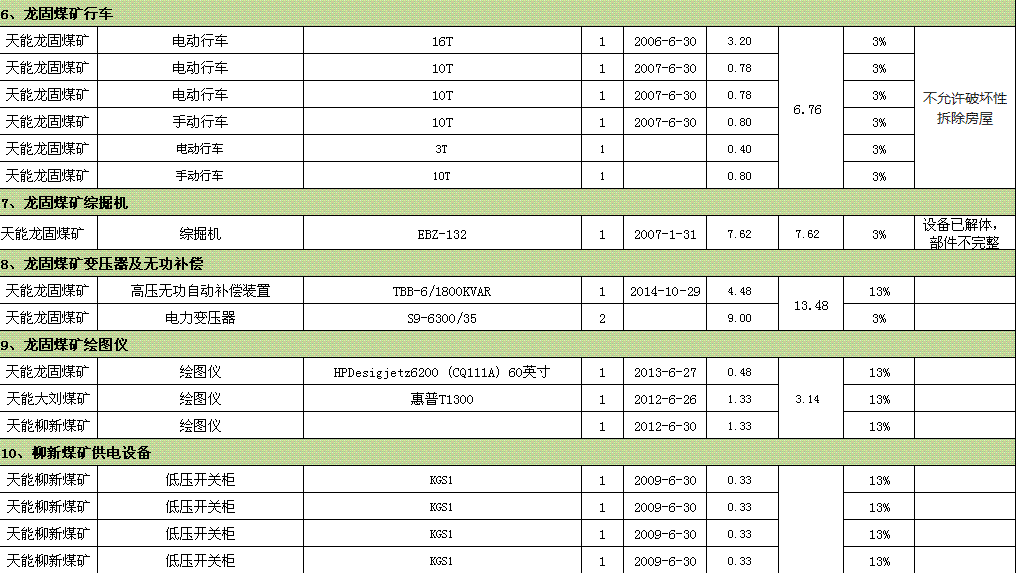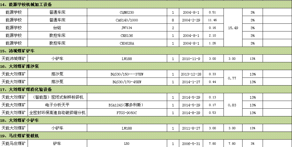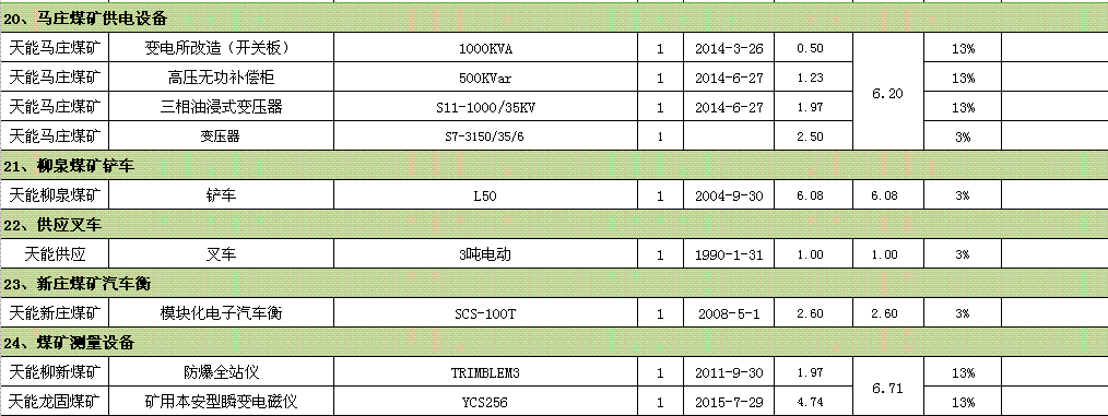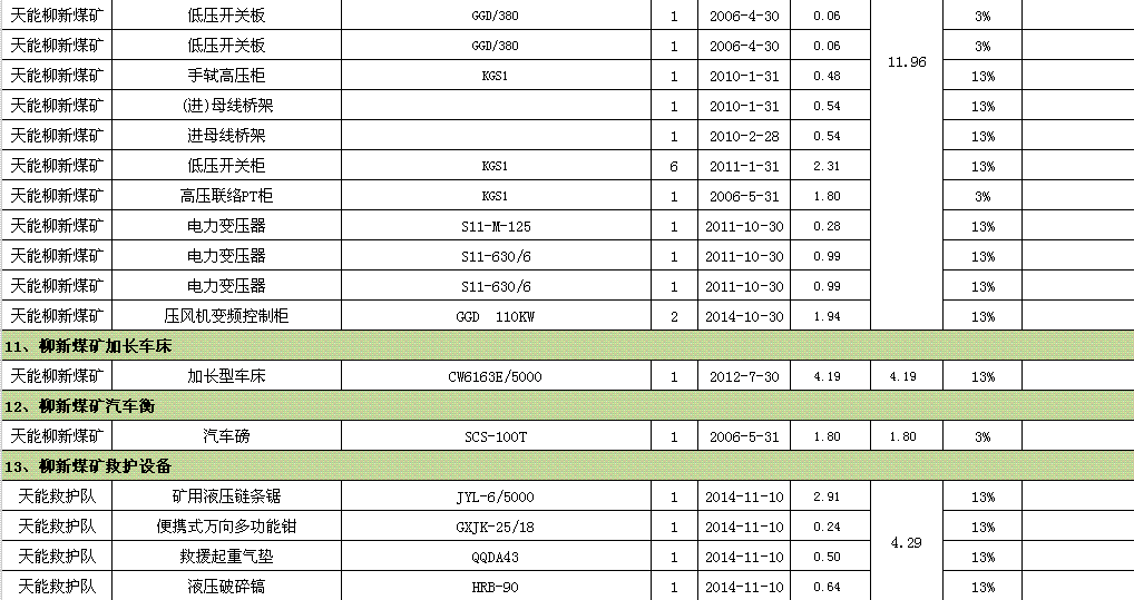 裝載機、鉆床、車床、提升機、壓風機、行車、綜掘機、變壓器、開關柜、鏟車汽車衡、測量設備等。