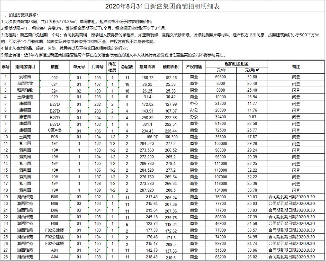 潤(rùn)和園、和風(fēng)雅致、玉潭佳苑、康馨園、玉棠苑、紫荊園、湖西雅苑等。拍租商鋪約28間,面積分別為數(shù)十至數(shù)百平米不等。社區(qū)商鋪?zhàn)馄谌辏?/SPAN>詳情請(qǐng)登錄本公司網(wǎng)站或微信公眾號(hào)查詢。